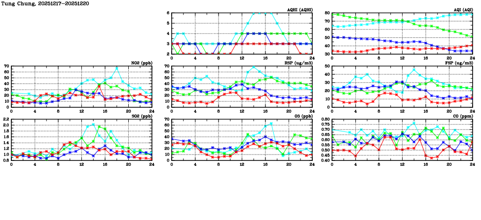 | Air Quality Data Time Series in Tung Chung (2025/12/20) | ( Line colors: Day -3 Day -2 Day -1 Current day ) | 2D Map Current AQHI |