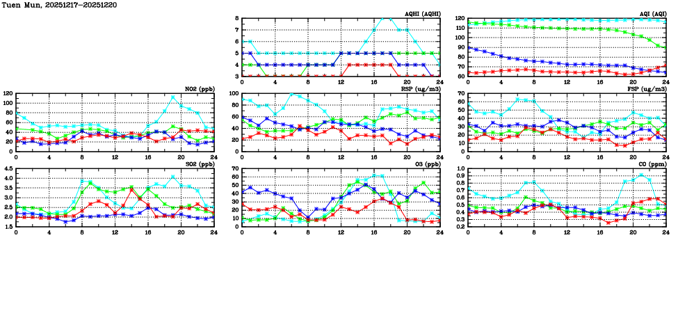 | Parameters: | AQHI | AQI | RSP | FSP | NO2 | SO2 | O3 | CO | Temp | WS | WD |