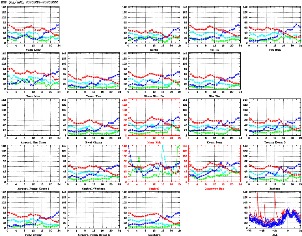 | Air Quality Data Time Series for RSP (2025/12/22) | ( Line colors: Day -3 Day -2 Day -1 Current day ) | 2D Map Current AQHI |