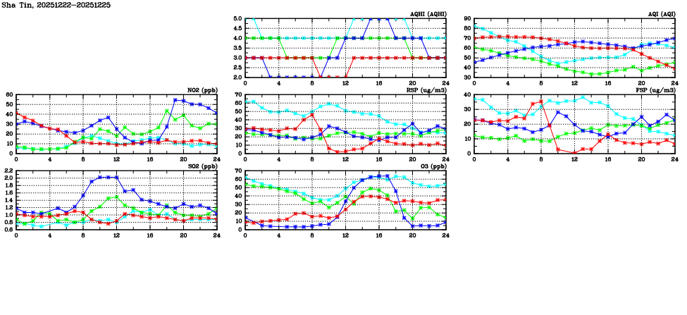 | Air Quality Data Time Series in Sha Tin (2025/12/25) | ( Line colors: Day -3 Day -2 Day -1 Current day ) | 2D Map Current AQHI |