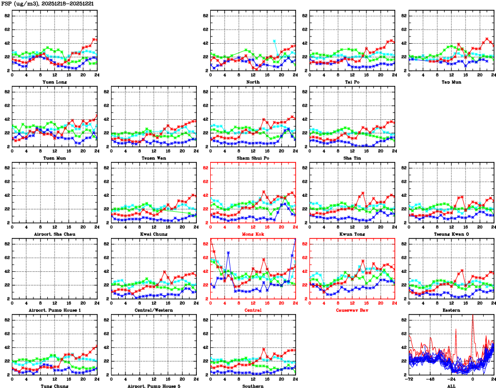 | Air Quality Data Time Series for FSP (2025/12/21) | ( Line colors: Day -3 Day -2 Day -1 Current day ) | 2D Map Current AQHI |