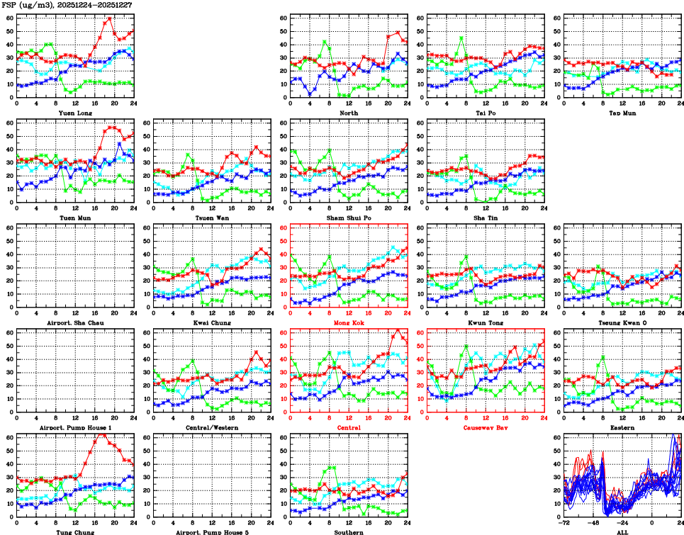 | Air Quality Data Time Series for FSP (2025/12/27) | ( Line colors: Day -3 Day -2 Day -1 Current day ) | 2D Map Current AQHI |