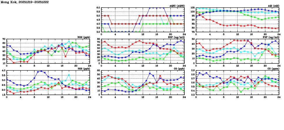 | Parameters: | AQHI | AQI | RSP | FSP | NO2 | SO2 | O3 | CO | Temp | WS | WD |