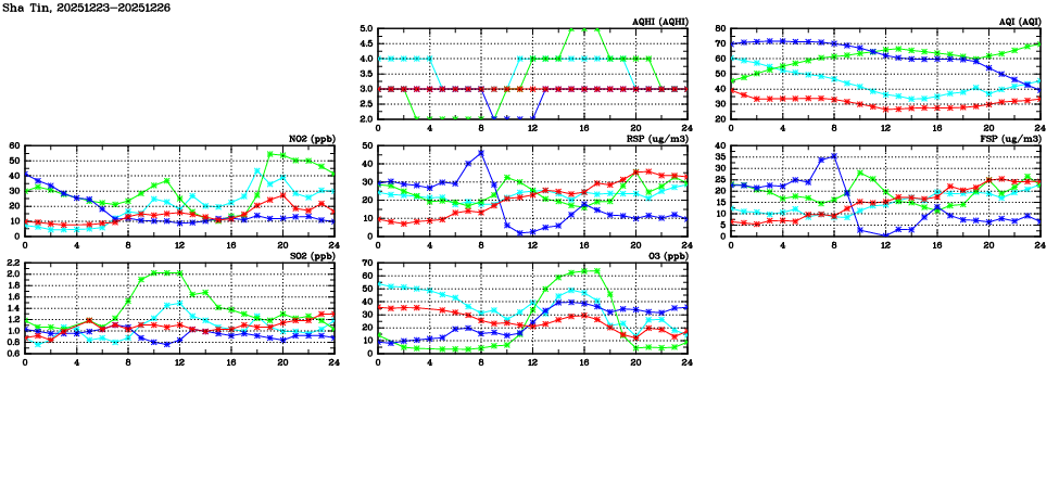| Air Quality Data Time Series in Sha Tin (2025/12/26) | ( Line colors: Day -3 Day -2 Day -1 Current day ) | 2D Map Current AQHI |