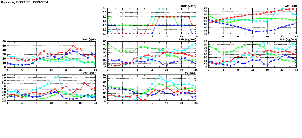 | Air Quality Data Time Series in Eastern (2025/12/24) | ( Line colors: Day -3 Day -2 Day -1 Current day ) | 2D Map Current AQHI |