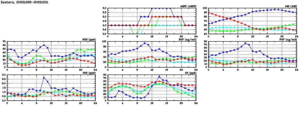 | Air Quality Data Time Series in Eastern (2025/12/31) | ( Line colors: Day -3 Day -2 Day -1 Current day ) | 2D Map Current AQHI |