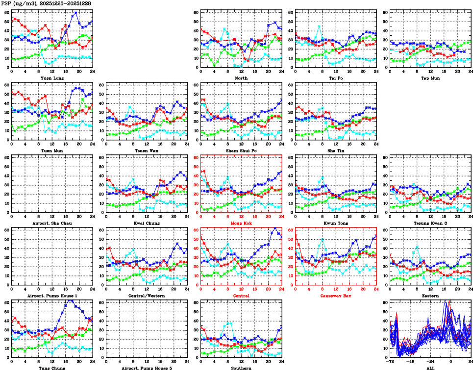 | Air Quality Data Time Series for FSP (2025/12/28) | ( Line colors: Day -3 Day -2 Day -1 Current day ) | 2D Map Current AQHI |