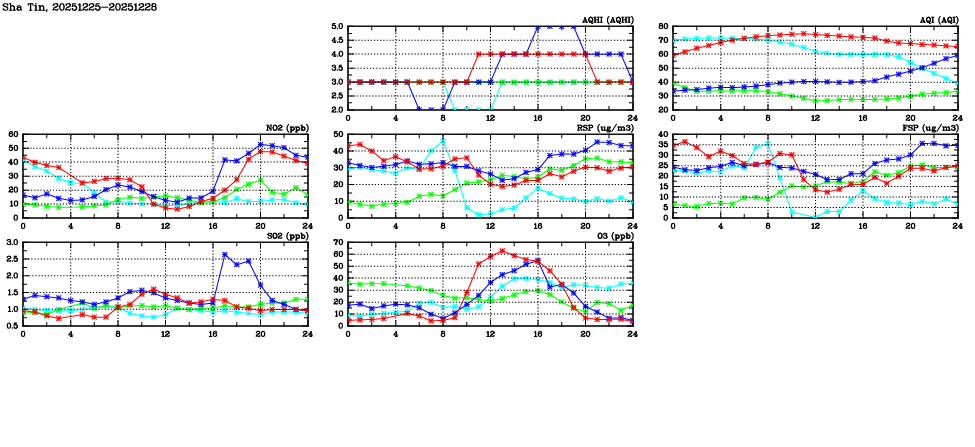 | Air Quality Data Time Series in Sha Tin (2025/12/28) | ( Line colors: Day -3 Day -2 Day -1 Current day ) | 2D Map Current AQHI |