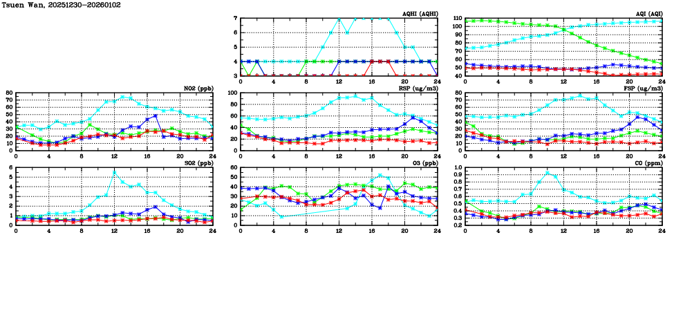 | Parameters: | AQHI | AQI | RSP | FSP | NO2 | SO2 | O3 | CO | Temp | WS | WD |