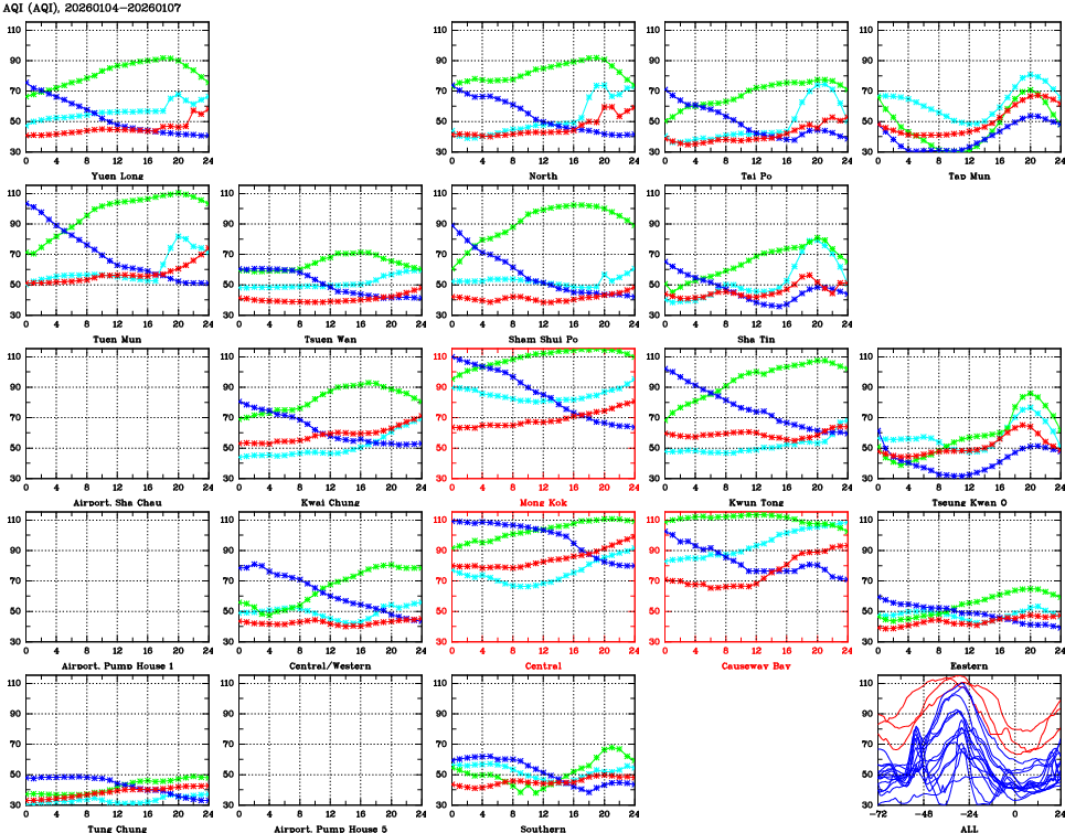 | Parameters: | AQHI | AQI | RSP | FSP | NO2 | SO2 | O3 | CO | Temp | WS | WD |
