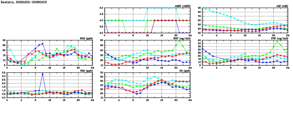 | Air Quality Data Time Series in Eastern (2026/01/03) | ( Line colors: Day -3 Day -2 Day -1 Current day ) | 2D Map Current AQHI |