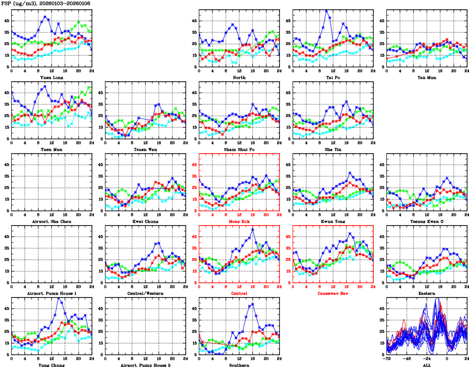 | Air Quality Data Time Series for FSP (2026/01/06) | ( Line colors: Day -3 Day -2 Day -1 Current day ) | 2D Map Current AQHI |