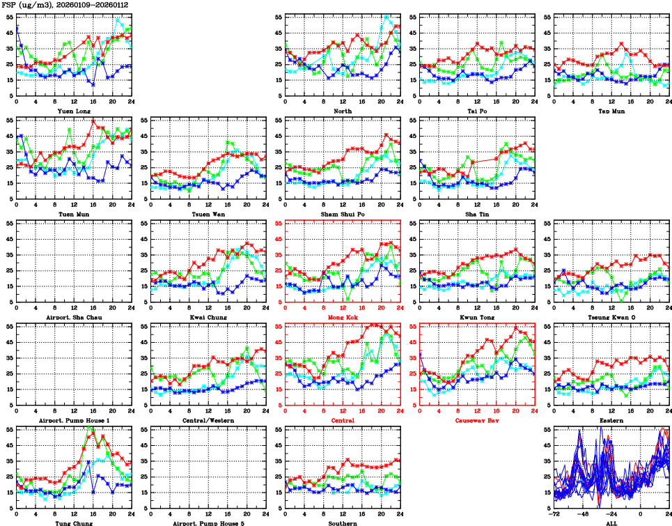 | Air Quality Data Time Series for FSP (2026/01/12) | ( Line colors: Day -3 Day -2 Day -1 Current day ) | 2D Map Current AQHI |