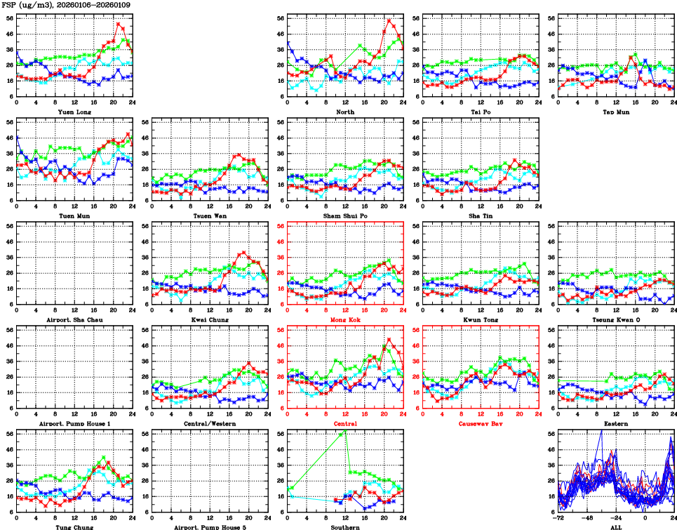 | Air Quality Data Time Series for FSP (2026/01/09) | ( Line colors: Day -3 Day -2 Day -1 Current day ) | 2D Map Current AQHI |