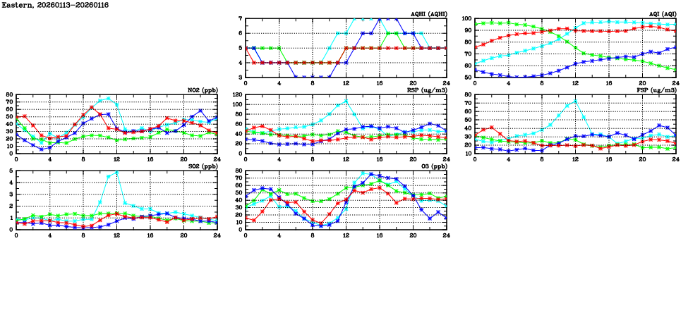 | Air Quality Data Time Series in Eastern (2026/01/16) | ( Line colors: Day -3 Day -2 Day -1 Current day ) | 2D Map Current AQHI |