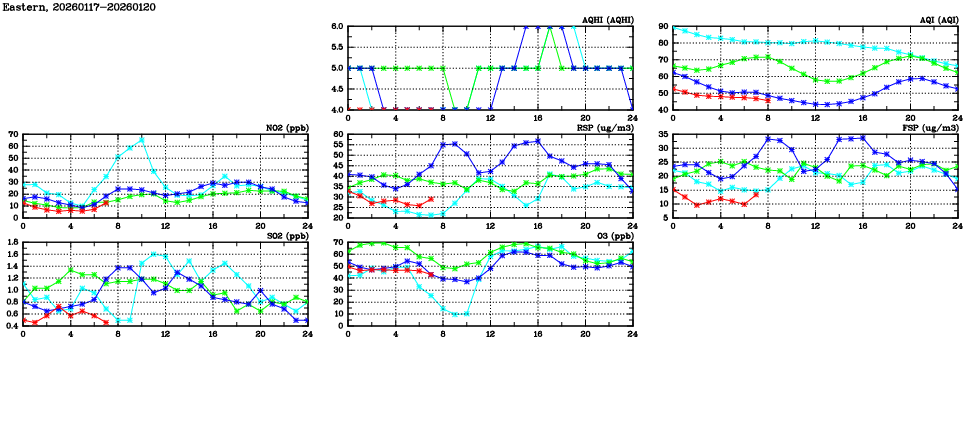 | Air Quality Data Time Series in Eastern (2026/01/20) | ( Line colors: Day -3 Day -2 Day -1 Current day ) | 2D Map Current AQHI |