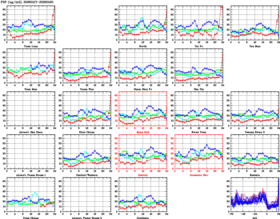 | Air Quality Data Time Series for FSP (2026/01/20) | ( Line colors: Day -3 Day -2 Day -1 Current day ) | 2D Map Current AQHI |