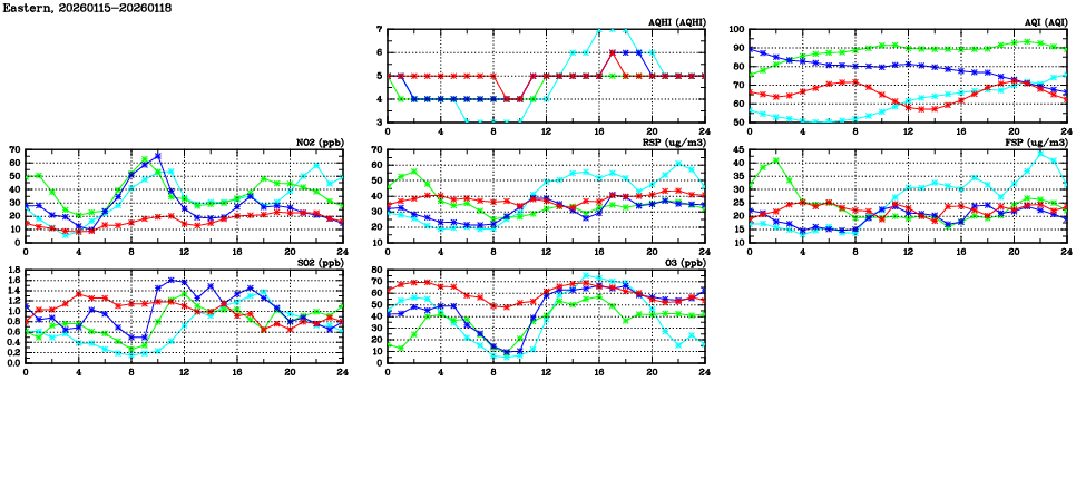 | Air Quality Data Time Series in Eastern (2026/01/18) | ( Line colors: Day -3 Day -2 Day -1 Current day ) | 2D Map Current AQHI |