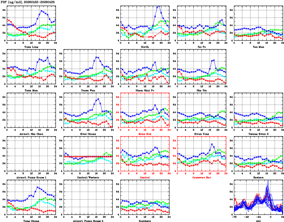 | Air Quality Data Time Series for FSP (2026/01/25) | ( Line colors: Day -3 Day -2 Day -1 Current day ) | 2D Map Current AQHI |