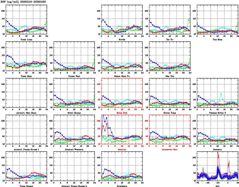 | Air Quality Data Time Series for RSP (2026/01/22) | ( Line colors: Day -3 Day -2 Day -1 Current day ) | 2D Map Current AQHI |