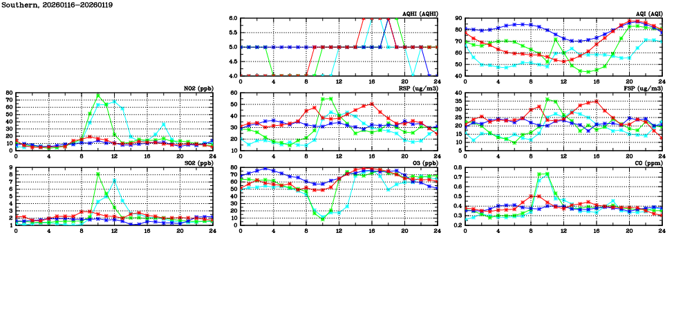 | Air Quality Data Time Series in Southern (2026/01/19) | ( Line colors: Day -3 Day -2 Day -1 Current day ) | 2D Map Current AQHI |