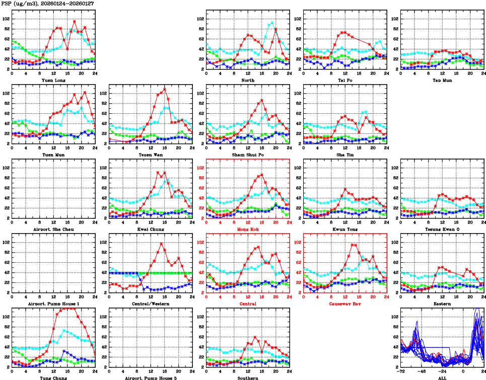 | Air Quality Data Time Series for FSP (2026/01/27) | ( Line colors: Day -3 Day -2 Day -1 Current day ) | 2D Map Current AQHI |
