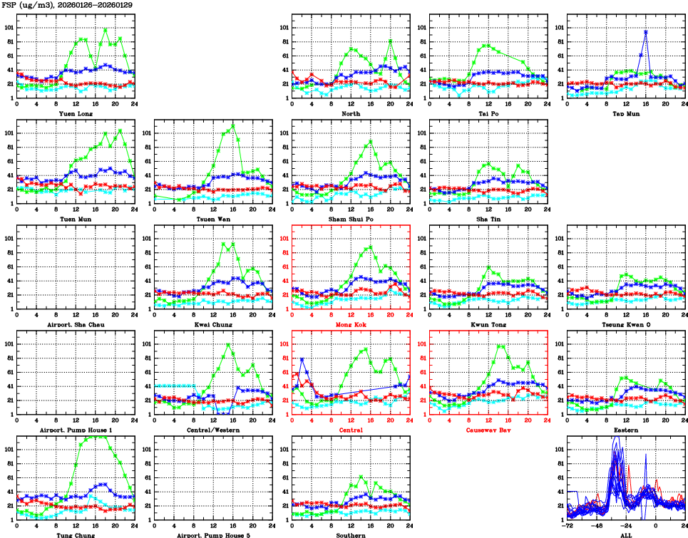 | Air Quality Data Time Series for FSP (2026/01/29) | ( Line colors: Day -3 Day -2 Day -1 Current day ) | 2D Map Current AQHI |