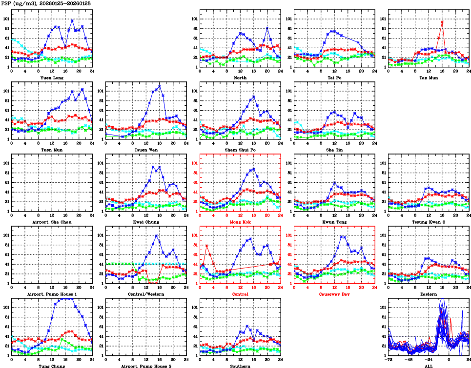 | Air Quality Data Time Series for FSP (2026/01/28) | ( Line colors: Day -3 Day -2 Day -1 Current day ) | 2D Map Current AQHI |