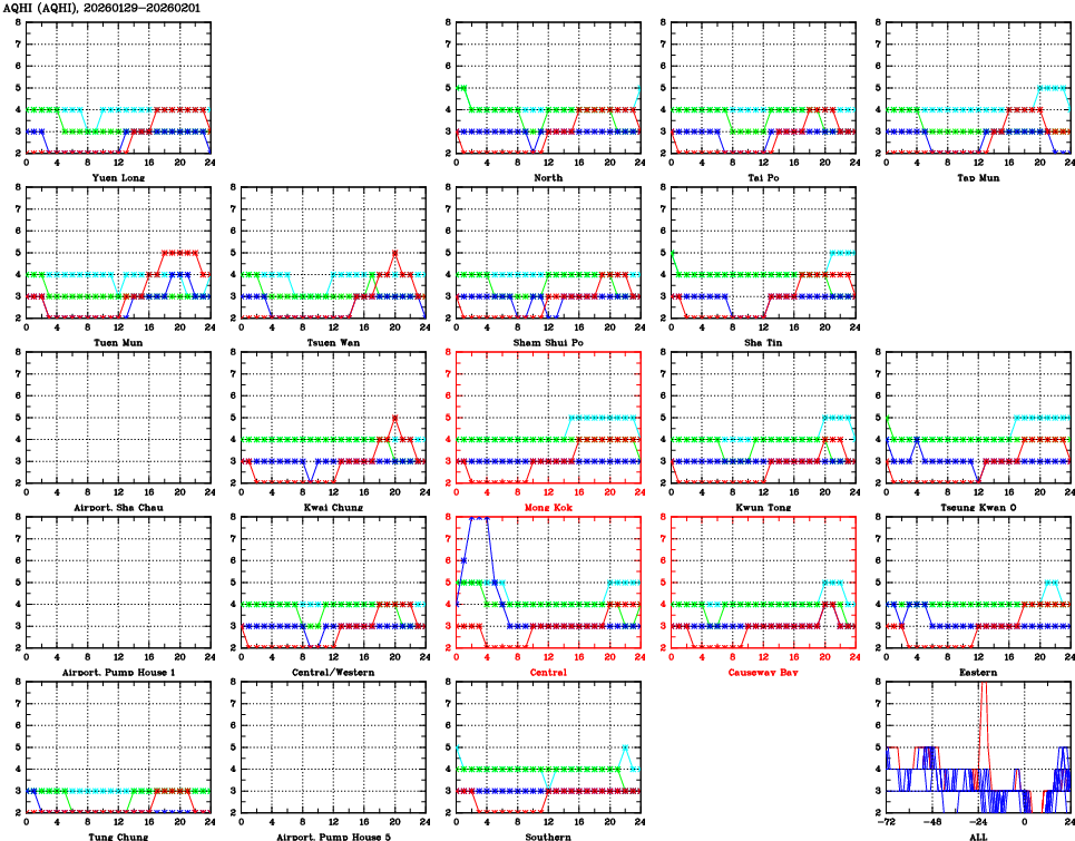 | Parameters: | AQHI | AQI | RSP | FSP | NO2 | SO2 | O3 | CO | Temp | WS | WD |