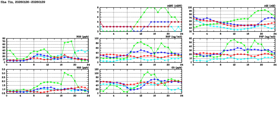 | Air Quality Data Time Series in Sha Tin (2026/01/29) | ( Line colors: Day -3 Day -2 Day -1 Current day ) | 2D Map Current AQHI |