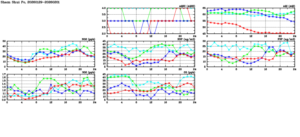 | Parameters: | AQHI | AQI | RSP | FSP | NO2 | SO2 | O3 | CO | Temp | WS | WD |