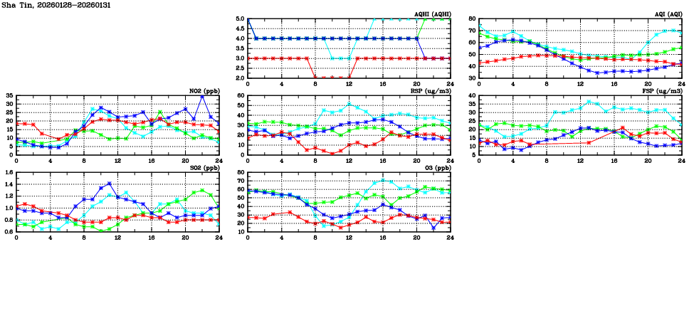 | Air Quality Data Time Series in Sha Tin (2026/01/31) | ( Line colors: Day -3 Day -2 Day -1 Current day ) | 2D Map Current AQHI |