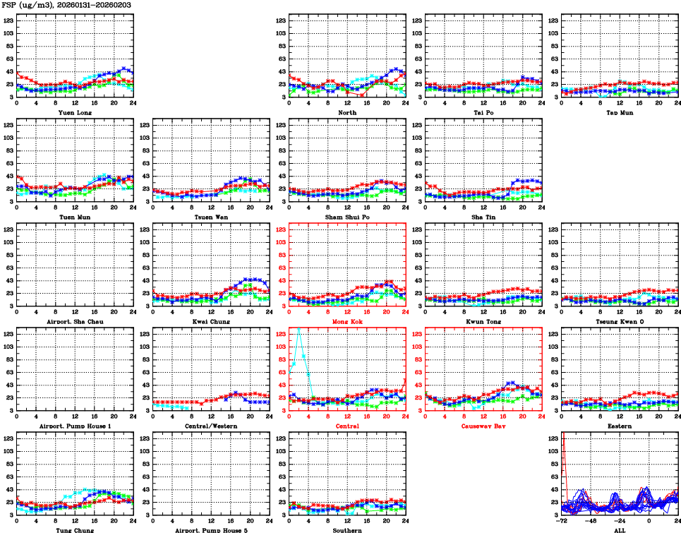| Air Quality Data Time Series for FSP (2026/02/03) | ( Line colors: Day -3 Day -2 Day -1 Current day ) | 2D Map Current AQHI |