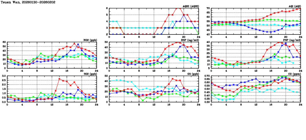 | Parameters: | AQHI | AQI | RSP | FSP | NO2 | SO2 | O3 | CO | Temp | WS | WD |