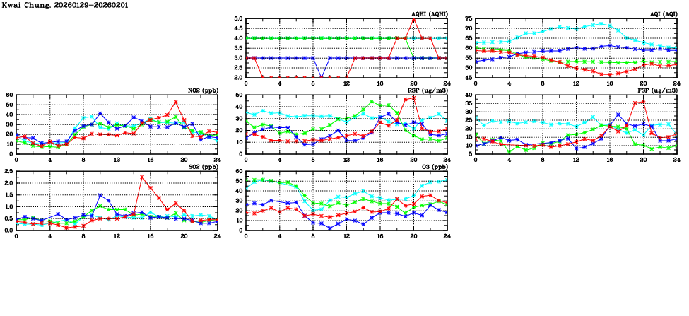 | Parameters: | AQHI | AQI | RSP | FSP | NO2 | SO2 | O3 | CO | Temp | WS | WD |