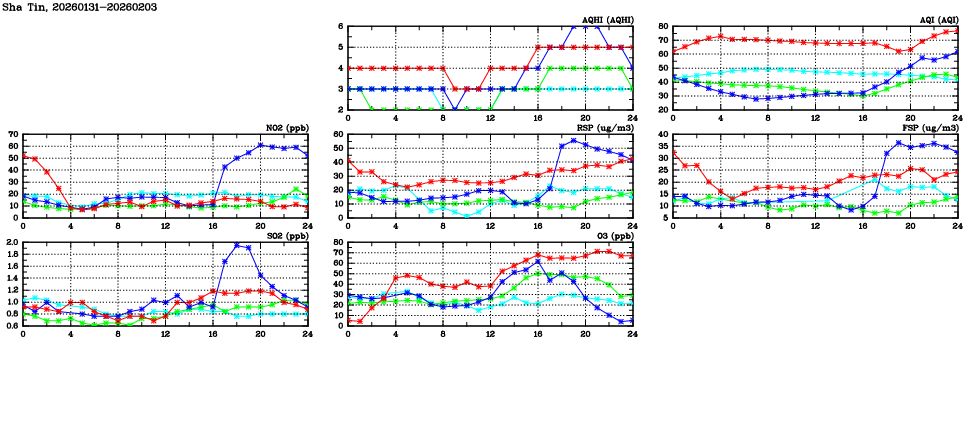 | Air Quality Data Time Series in Sha Tin (2026/02/03) | ( Line colors: Day -3 Day -2 Day -1 Current day ) | 2D Map Current AQHI |
