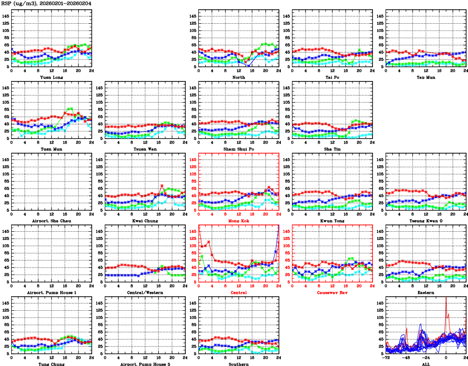 | Air Quality Data Time Series for RSP (2026/02/04) | ( Line colors: Day -3 Day -2 Day -1 Current day ) | 2D Map Current AQHI |