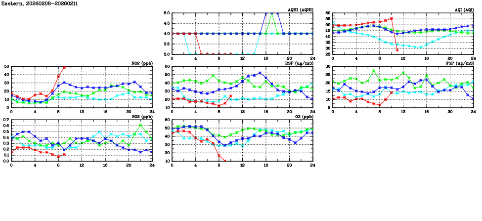 | Air Quality Data Time Series in Eastern (2026/02/11) | ( Line colors: Day -3 Day -2 Day -1 Current day ) | 2D Map Current AQHI |