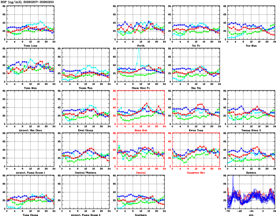 | Air Quality Data Time Series for RSP (2026/02/10) | ( Line colors: Day -3 Day -2 Day -1 Current day ) | 2D Map Current AQHI |