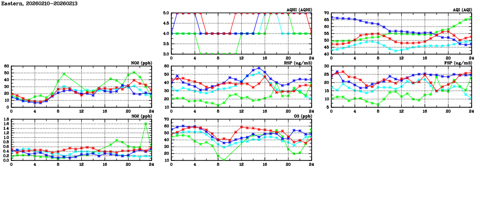 | Air Quality Data Time Series in Eastern (2026/02/13) | ( Line colors: Day -3 Day -2 Day -1 Current day ) | 2D Map Current AQHI |