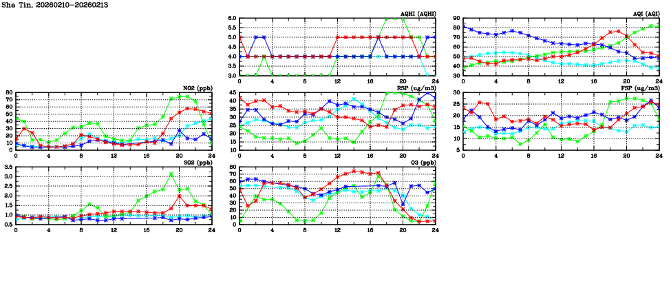 | Air Quality Data Time Series in Sha Tin (2026/02/13) | ( Line colors: Day -3 Day -2 Day -1 Current day ) | 2D Map Current AQHI |