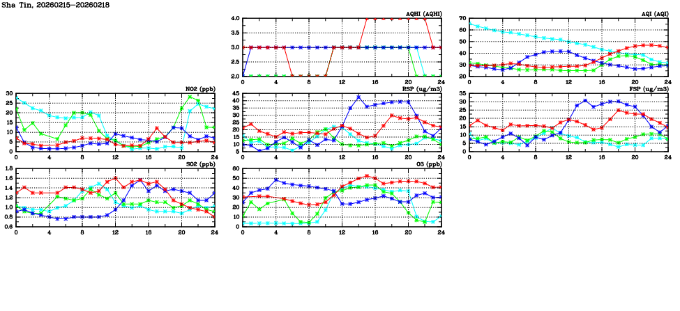 | Air Quality Data Time Series in Sha Tin (2026/02/18) | ( Line colors: Day -3 Day -2 Day -1 Current day ) | 2D Map Current AQHI |