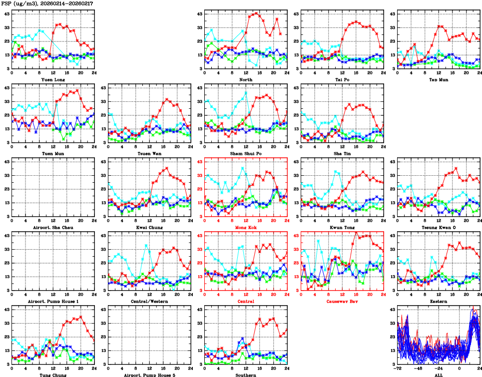 | Air Quality Data Time Series for FSP (2026/02/17) | ( Line colors: Day -3 Day -2 Day -1 Current day ) | 2D Map Current AQHI |
