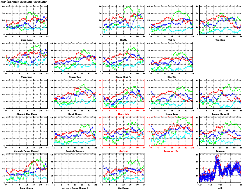 | Air Quality Data Time Series for FSP (2026/02/19) | ( Line colors: Day -3 Day -2 Day -1 Current day ) | 2D Map Current AQHI |