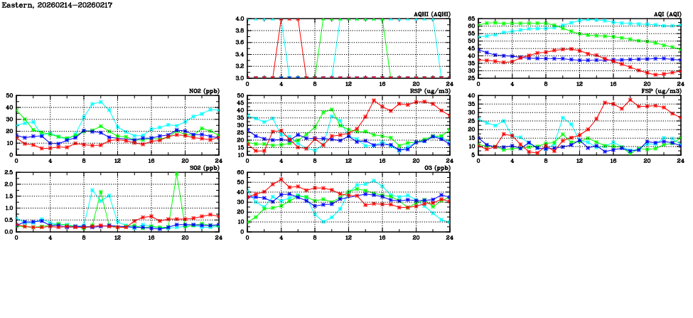 | Air Quality Data Time Series in Eastern (2026/02/17) | ( Line colors: Day -3 Day -2 Day -1 Current day ) | 2D Map Current AQHI |