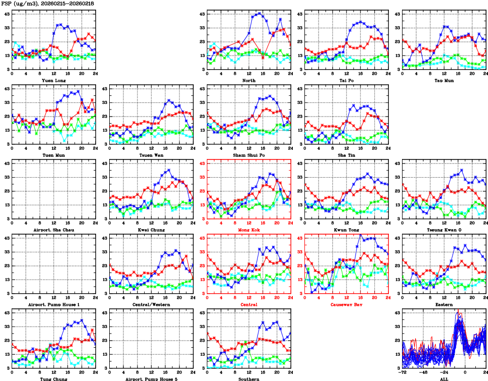 | Air Quality Data Time Series for FSP (2026/02/18) | ( Line colors: Day -3 Day -2 Day -1 Current day ) | 2D Map Current AQHI |