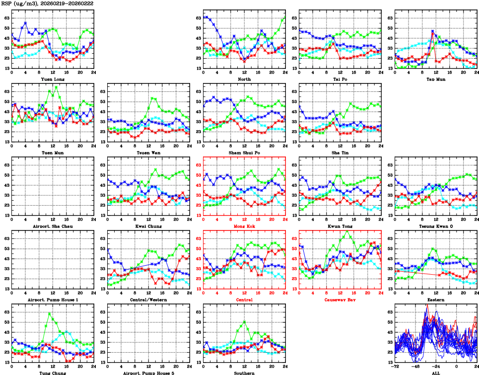 | Air Quality Data Time Series for RSP (2026/02/22) | ( Line colors: Day -3 Day -2 Day -1 Current day ) | 2D Map Current AQHI |