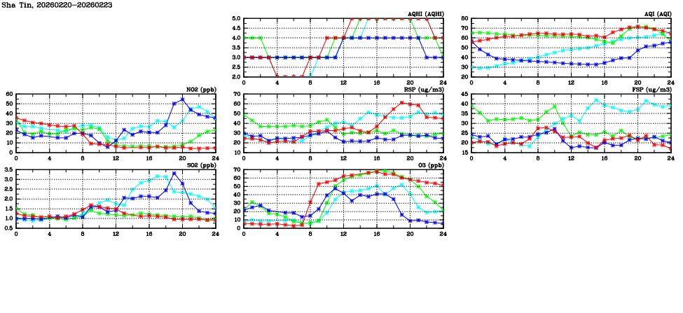 | Air Quality Data Time Series in Sha Tin (2026/02/23) | ( Line colors: Day -3 Day -2 Day -1 Current day ) | 2D Map Current AQHI |