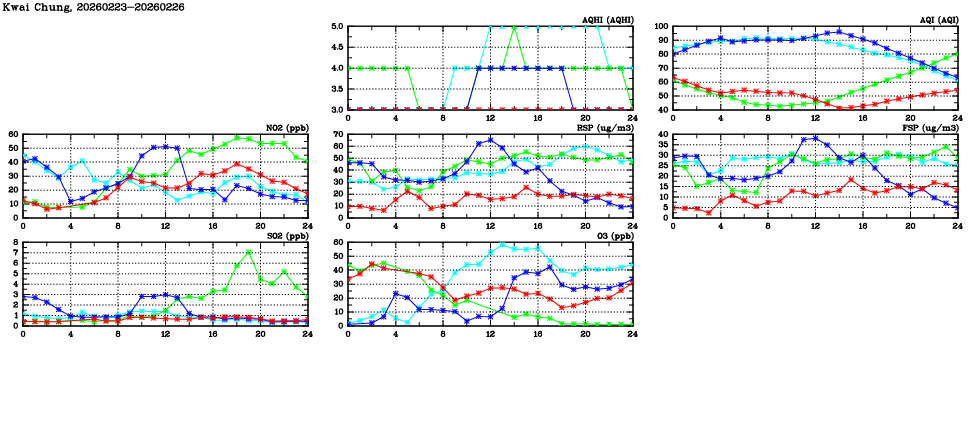 | Air Quality Data Time Series in Kwai Chung (2026/02/26) | ( Line colors: Day -3 Day -2 Day -1 Current day ) | 2D Map Current AQHI |