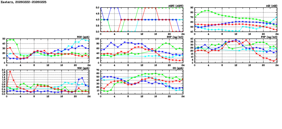 | Air Quality Data Time Series in Eastern (2026/02/25) | ( Line colors: Day -3 Day -2 Day -1 Current day ) | 2D Map Current AQHI |